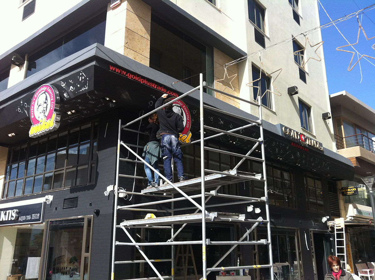 Εργασίες διαμόρφωσης και κατασκευής καφετέριας “MIKEL” στην διεύθυνση Ταγματάρχου Τζουλάκη & Ψαρομηλίγκων 14 στο Ηράκλειο Κρήτης.